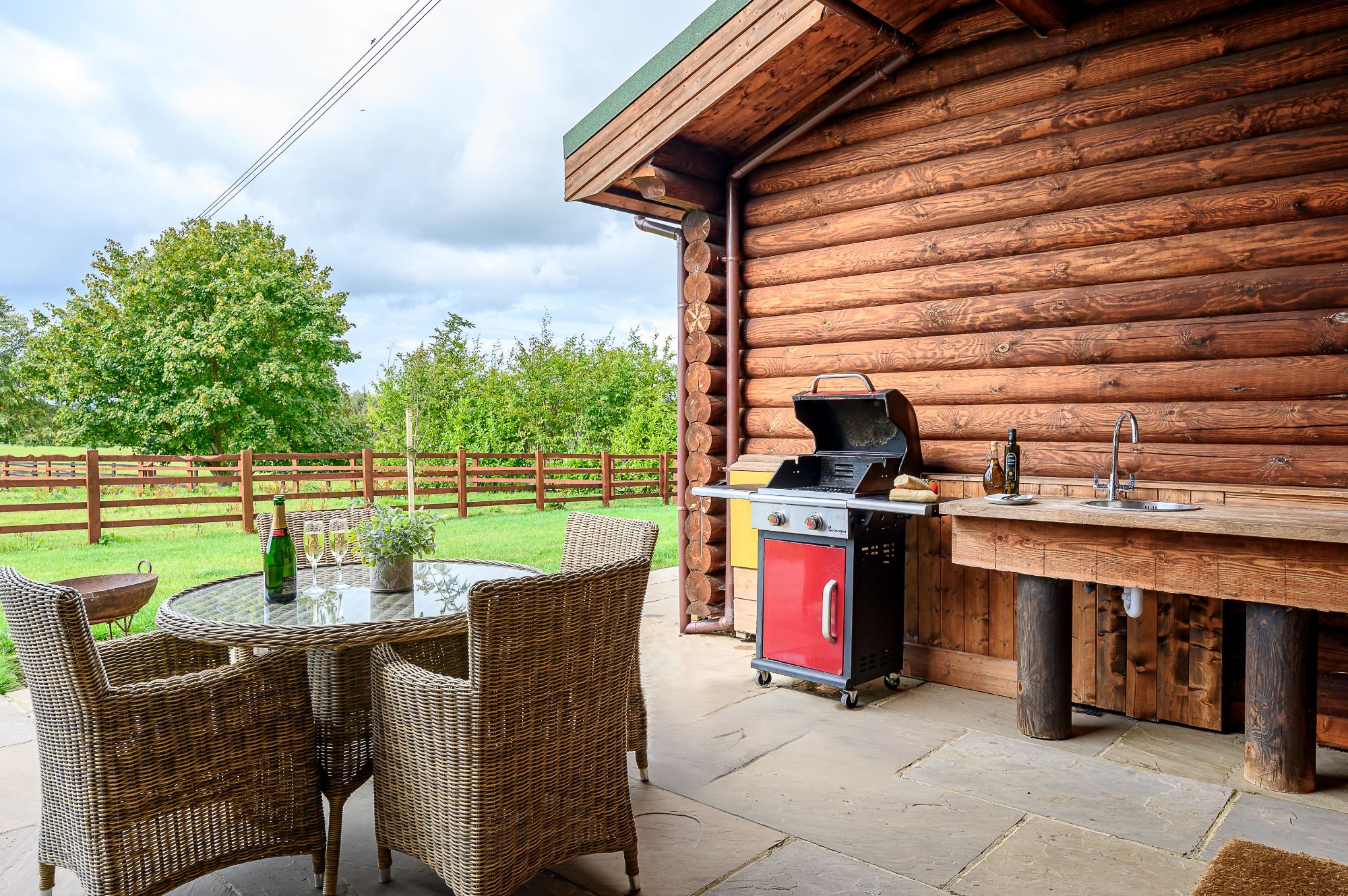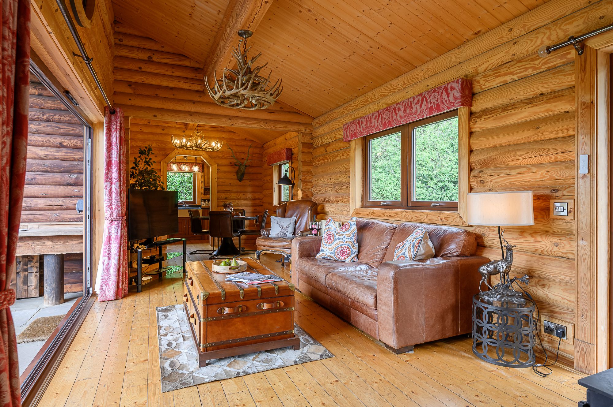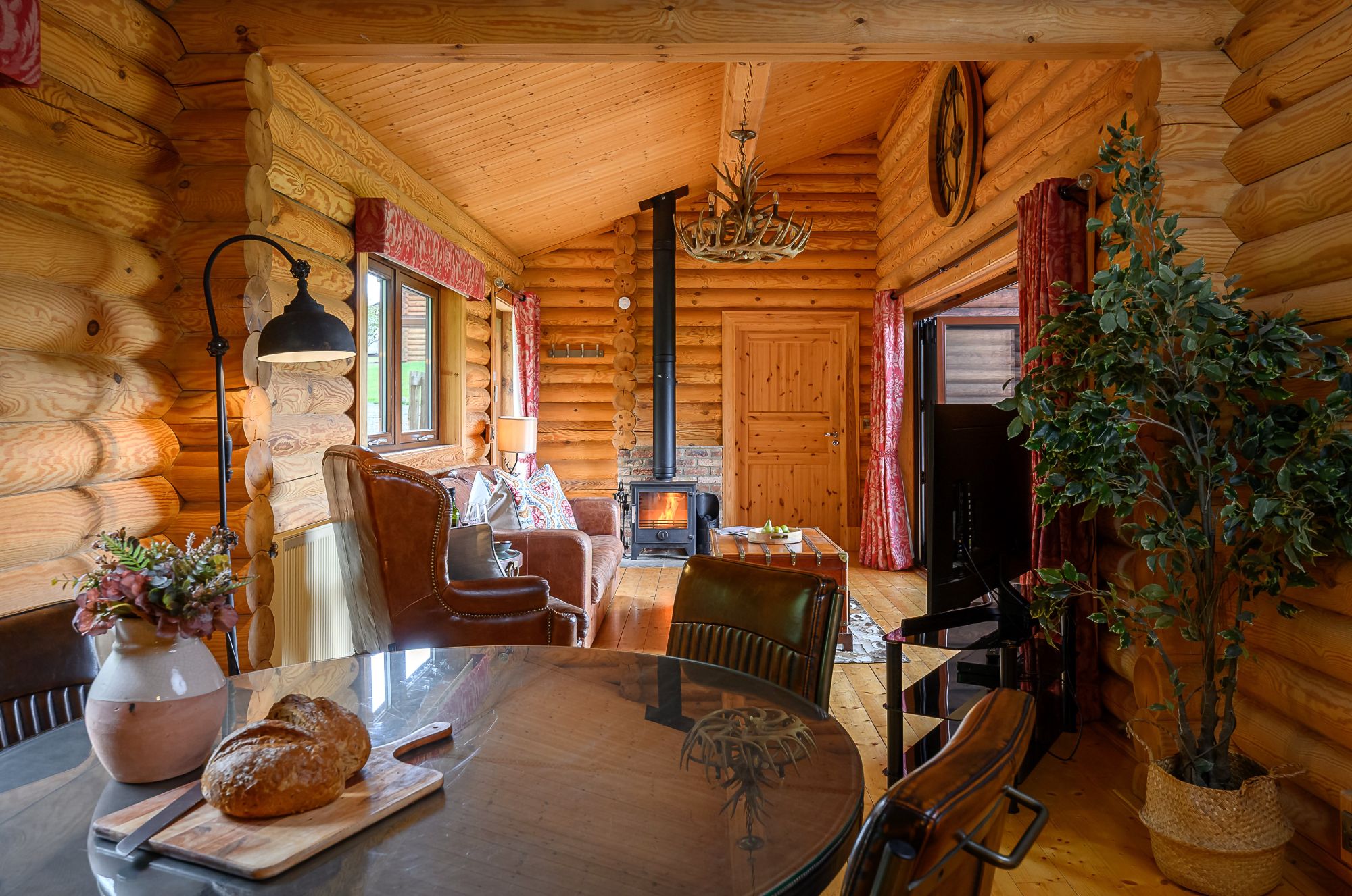 Bursting with style and charm you'll find an open-plan log cabin layout with wood-burning stove, comfortable sofa, Smart TV and windows facing the open countryside. The fully equipped self-catering kitchen in your luxury log cabin complete with a Nespresso coffee machine has everything you need to cook up a feast and enjoy a meal around dining table. Dogs are welcome at Hunters Lodge and will love the huge choice of walks in the area.