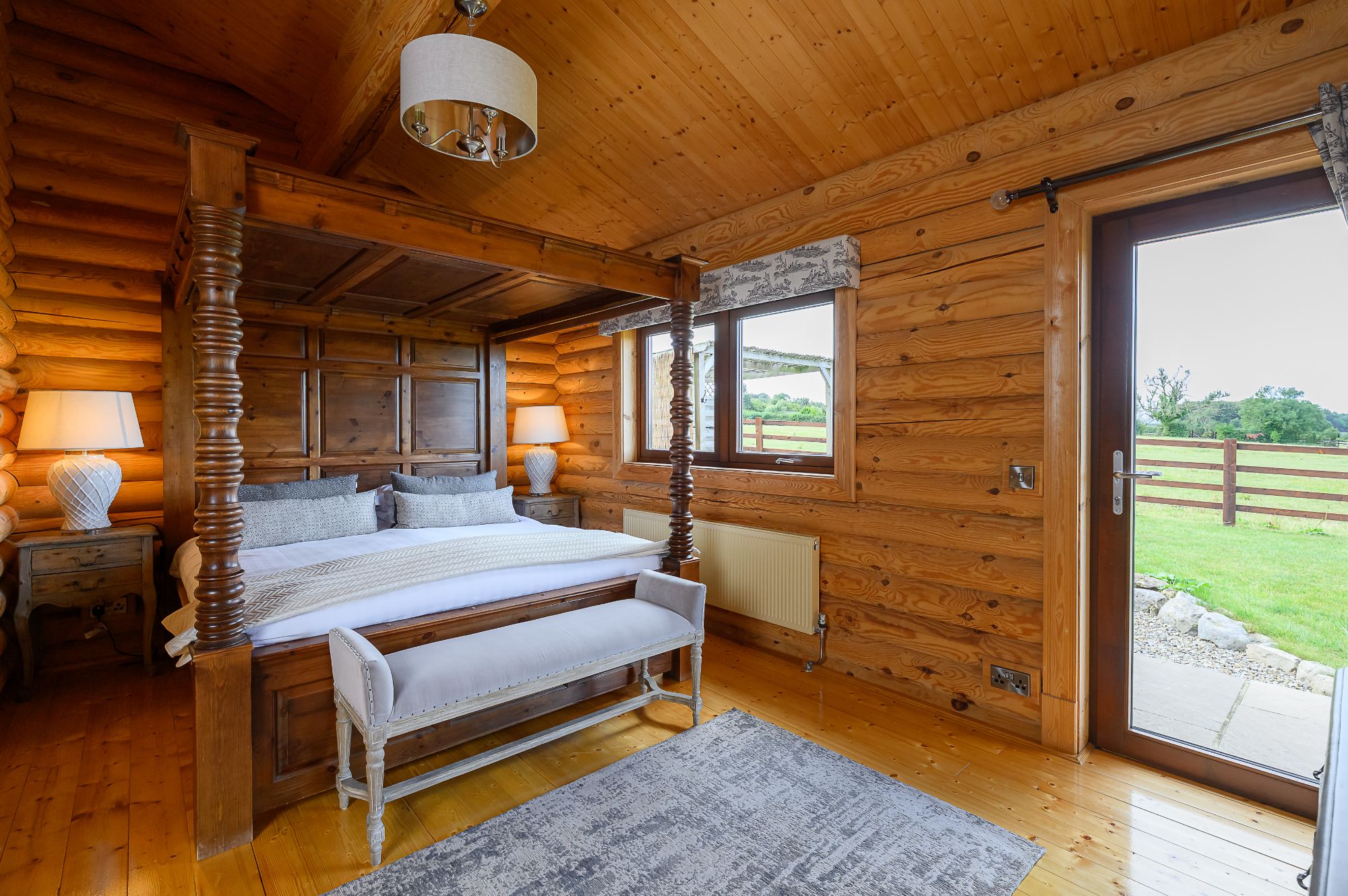 There is much to enjoy beyond the four walls of your log cabin, with over an acre of private garden. Rosina is perfect for a dog friendly holiday, with fencing separating the garden from the Sun Hill Lodges paddocks beyond. Don't be surprised if the only guests you encounter at Rosina are the resident ducks that wander up from the nearby lake.