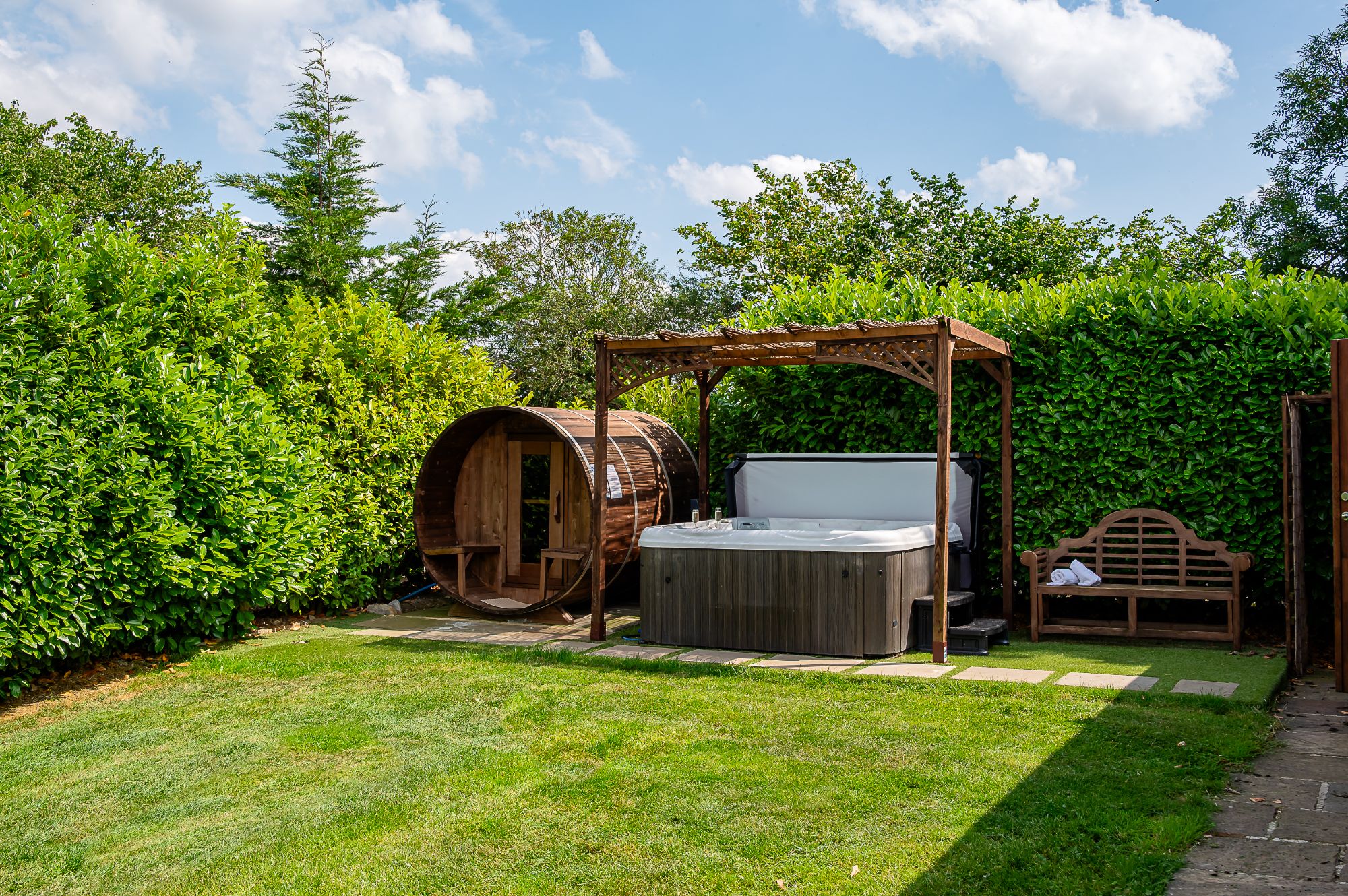 Step outside to admire the horses grazing in the paddocks and the rolling hills of North Yorkshire beyond from your elevated private patio. The traditional Scandinavian barrel sauna is the perfect place to relax and let off some steam. For the ultimate wellness boost, invigorate your senses under the cold outdoor shower and enjoy its revitalising benefits. Sink into the bubbling warmth of your private hot tub as you take in the peaceful surroundings. You can truly create a spa-like experience at William Lodge without ever leaving! Then dine al fresco around the covered dining table, after cooking up a feast of local produce bought from the Friday market in Leyburn on the gas-fired BBQ. Plus, the garden is fully enclosed, so dogs can roam without any worries.