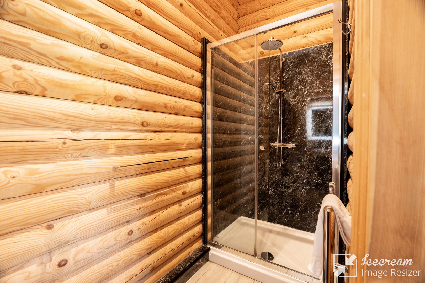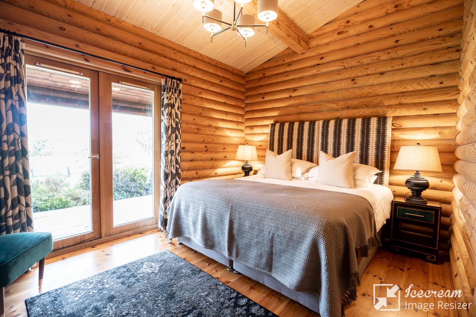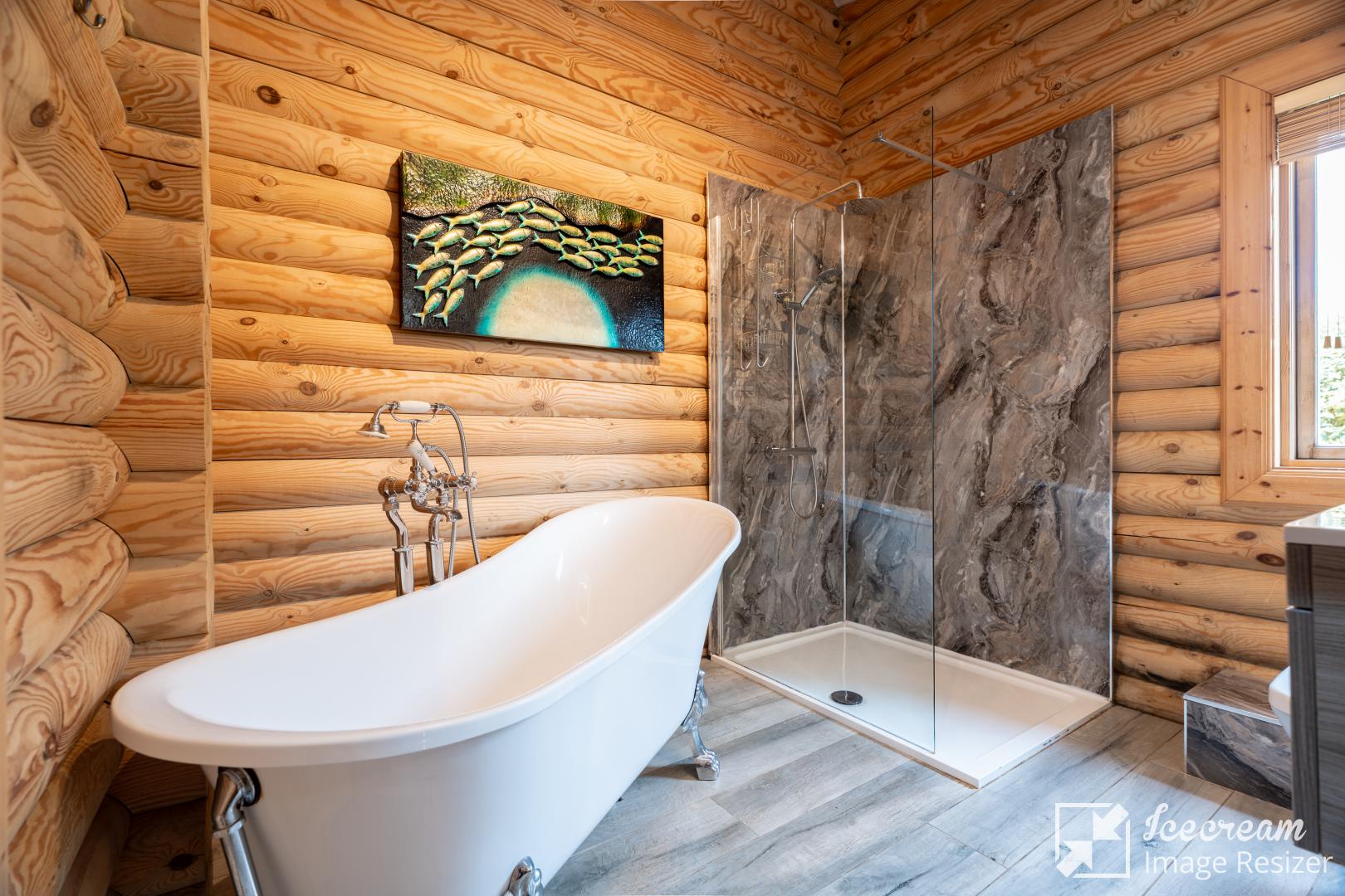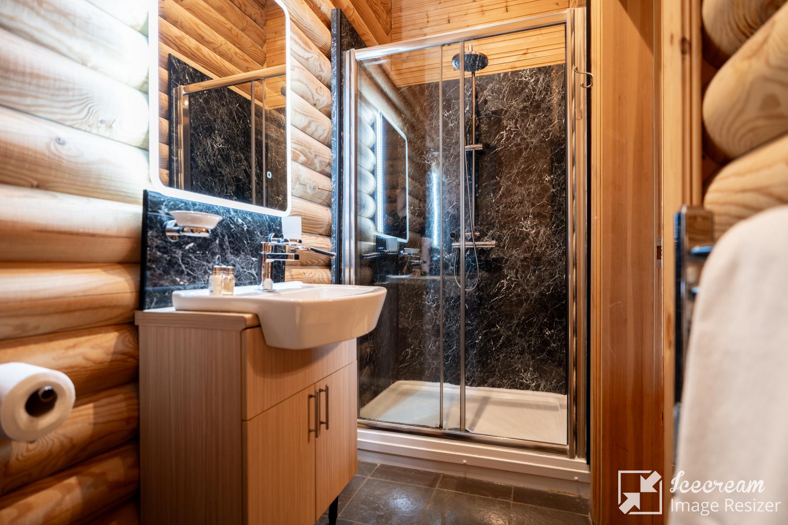 On your own private driveway, there is space for two cars. A ramp and steps lead up to the lodge which then has flagstones surrounding it. There is one small step to get inside, then the lodge is all on one level and so is well suited to guests with limited mobility. This is accommodation with a ground floor bedroom and a walk-in step-free shower.