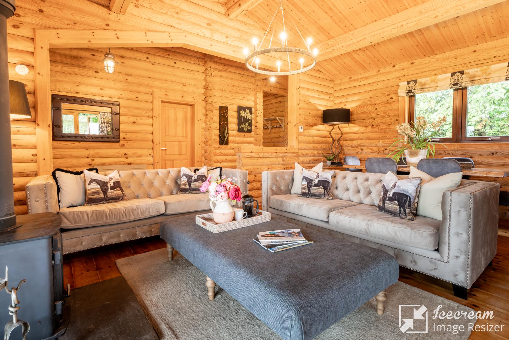 Woodlands Lodge is a roomy three-bedroom log cabin with plenty of space to entertain and catch up during your group getaway. A recent refurbishment combines modern interiors with the rustic charm of this cabin. The high ceilings, soft lighting, luxury touches, and stunning views from each room make this a magical place to make memories on your Yorkshire break. You'll find a wood-burning stove, comfy sofas, and a Smart TV. The sitting area is open plan with the dining area, which has a dining table with seating for six. The kitchen beyond is fully equipped for a self-catering break.